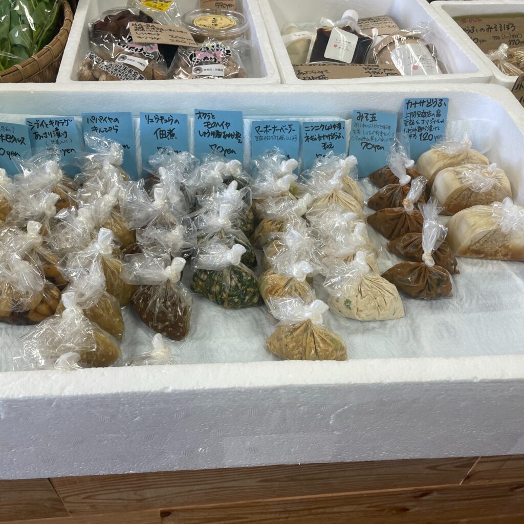 店内は地元農家さんによる野菜や手作りのお惣菜などであふれていて、外観もお店のこだわりがよく分かる素敵な看板が立っていました。