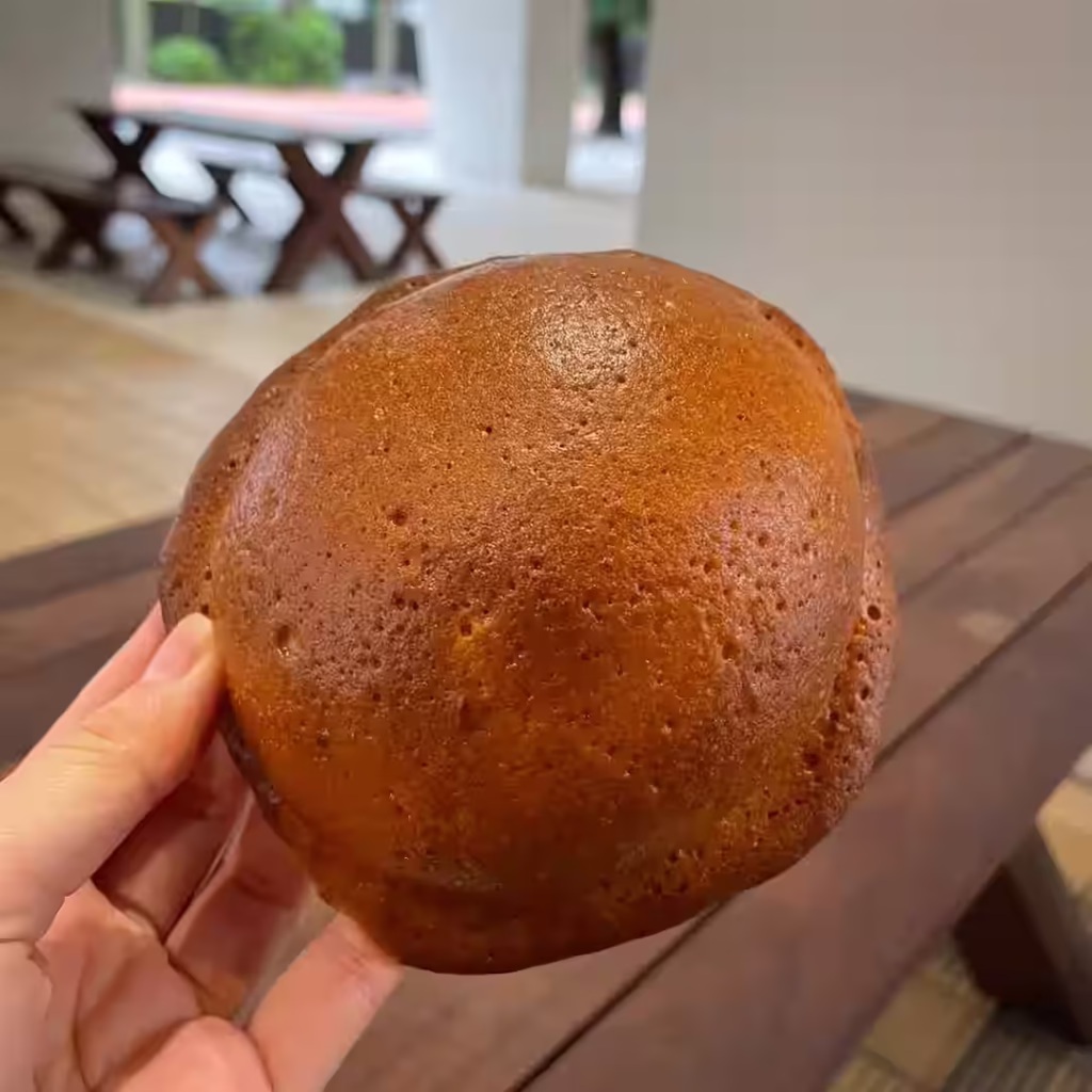 周りの帽子のつばのような部分はサクサクしたクッキー生地で、真ん中はふわふわしたパンです。両部分とも美味しくて、どちらを最後に残そうか、ギリギリまで迷いました (クッキー部分が選ばれました)味噌パンなのでどんな味がするのかなと思っていましたが、しっかり甘めでした!素朴な味なのですが食べれば食べるほどクセになるパンです