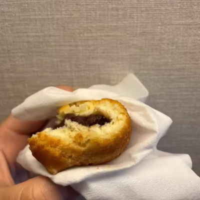 福岡県 の 博多 平尾駅近くにある「豆藤さん」の おからドーナツ です。おからドーナツの中にはあんこが入っていて、食感がよく美味しいです!おからのぼそぼそ感はあまり感じず、美味しいドーナツでした。