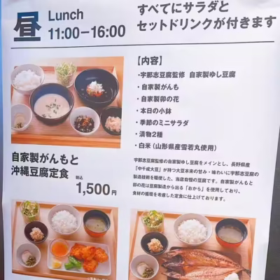 銀座 にある「MUJI DINER」 の自家製がんもと沖縄豆腐定食を食べました。沖縄にある美味しいお豆腐屋さん宇那志豆腐 さんが監修する #ゆし豆腐 、おからを使用したがんも、うの花が楽しめます。ゆし豆腐には、長野県産の 中千成 を使用しているそうです。沖縄のゆし豆腐に比べ、お豆腐のひとつの塊が大きいように感じました。味は濃すぎず美味しかったです。また、がんもはふつう豆腐からできていると思いますが、このがんもはおからからできていて、大豆も混ざっていました。揚げ焼きのような形になっていて、味が絶妙で本当に美味しかったです。がんもを買って帰れたらいいのに…と思います!